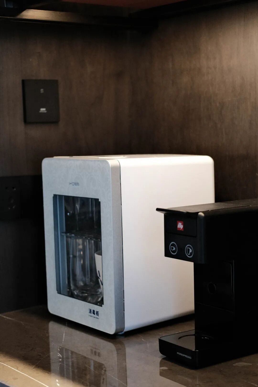 值得一提的是,除了迷你吧和咖啡机,鸿居还配备了消毒柜,现在这个时期显得尤为贴心有用,这点很好!