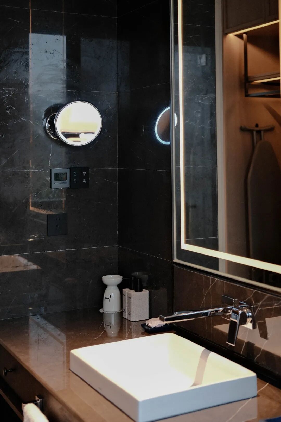 卫生间干湿分离,洗浴用品都是鸿居定制的,有补光镜,对于需要化妆的女生很友好~