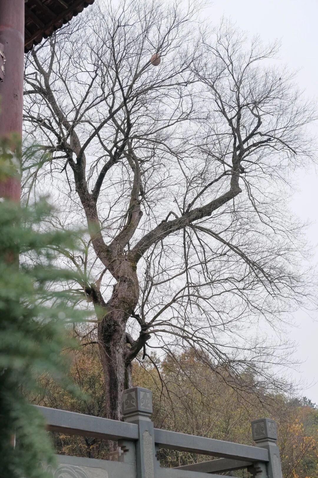 院子里还有棵千年古树,冬日萧索却难掩高大。