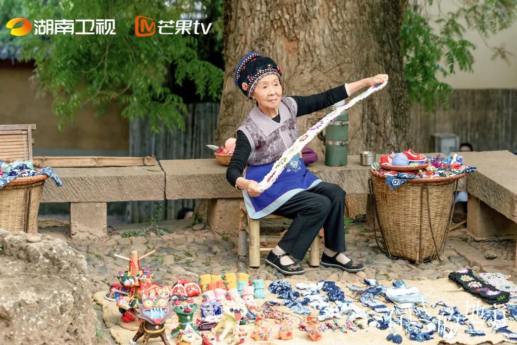 穿着民族服饰的村民有的摆摊,有的闲话家常,游客随意穿梭其间,非常惬意。