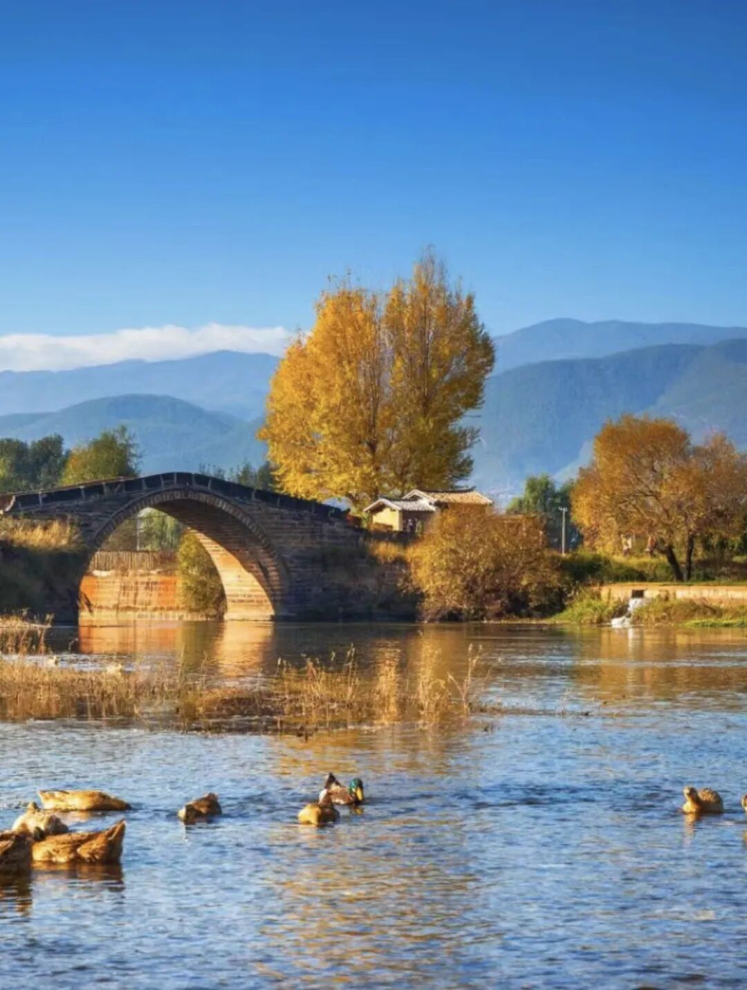 这座横跨黑惠江单孔石桥,全长有35.4米,上面有不少古朴石雕,与远处群山、近处河流相衬,非常好看!