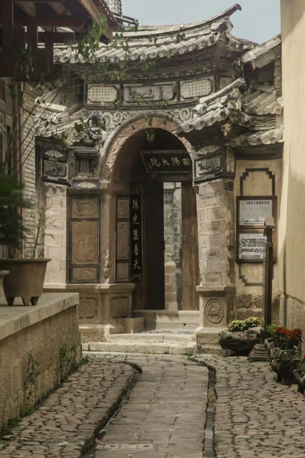 在小镇中随意走走,没有丽江的商业化,没有大理古城的熙熙攘攘,这里多得是古寺庙、古戏台、红沙石板街道蜿蜒连接一个个民居。
