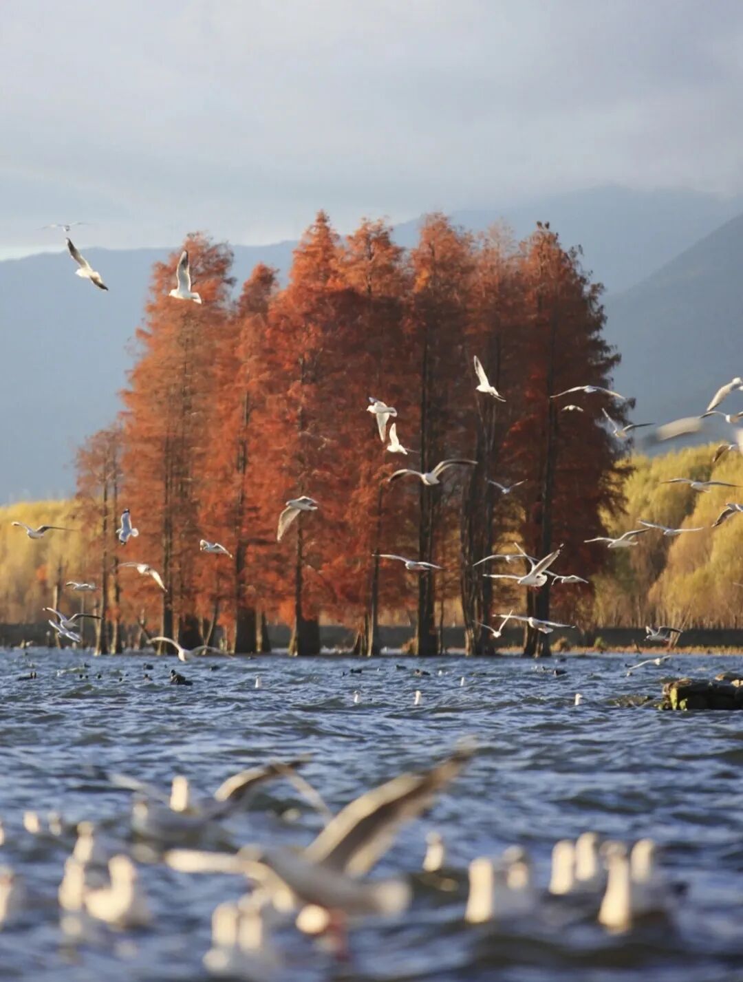 公园处在一个延伸到洱海中的狭长半岛上,草木繁盛,还时不时有海鸥飞过。