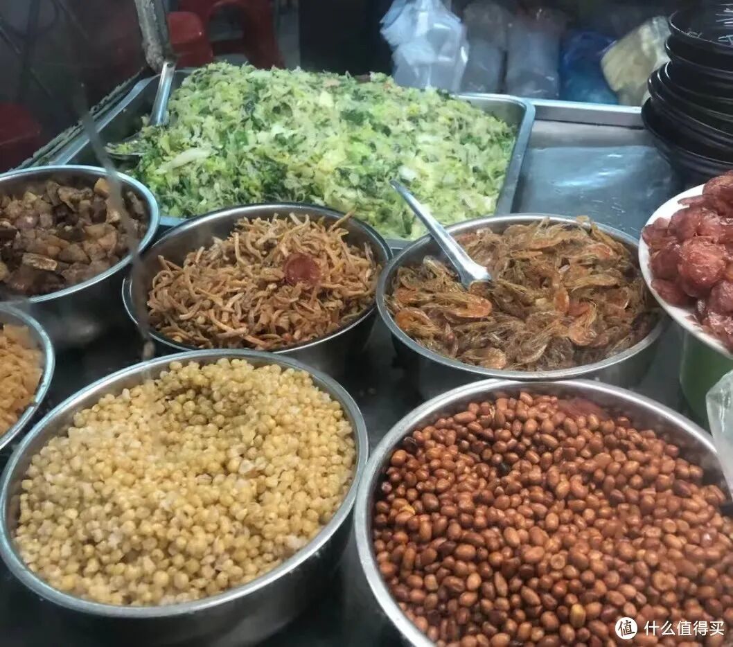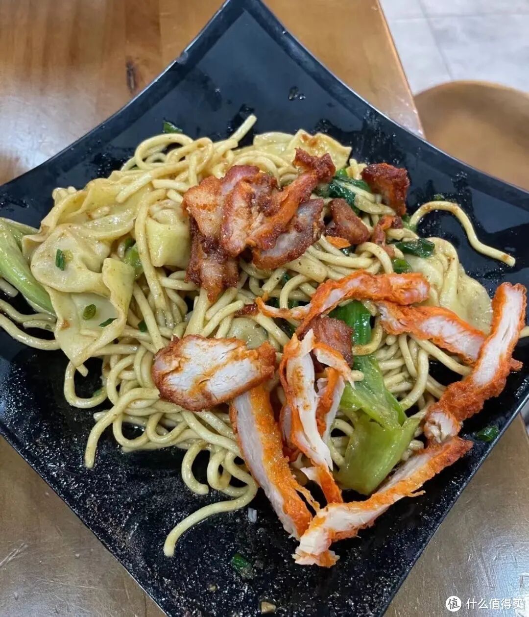 前面提到过,很多汕尾人是闽南地区移民的后代,所以这里会把广东人口中的云吞面叫做扁食面。叉烧干捞扁食面就是明叔家的招牌,配料和面生可以自由选择。极具闽南特色的一点是,店里看起来一堆咸味的配料,但其实面吃起来是带着甜味儿的。