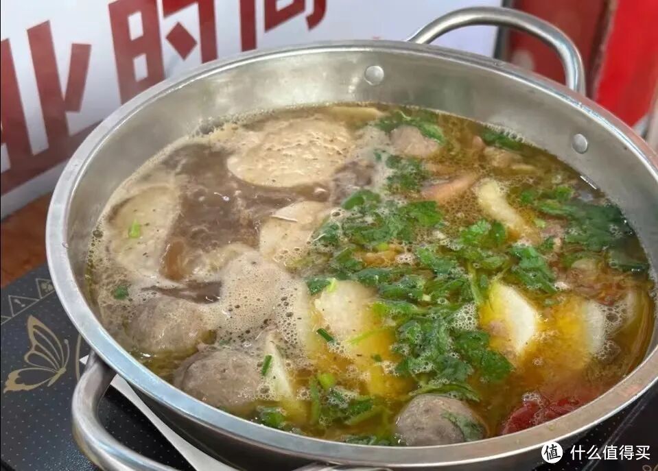 与潮汕牛肉火锅清汤涮生牛肉的吃法不同,汕尾的牛腩火锅用的是加了中草药熬出来的汤汁,用来涮的牛腩牛杂是提前卤过的,除了开炉费10块以外,食材全部按斤卖,想多尝试的朋友可以让老板给混搭一下。