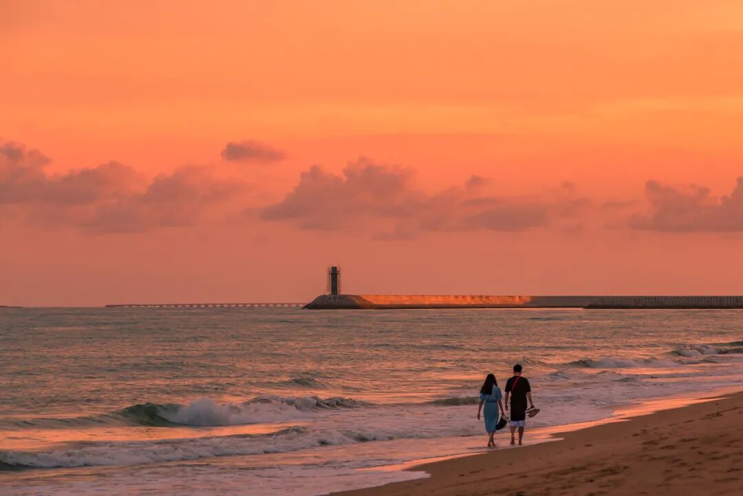 汕尾的看海时光离不开绝佳的优质海滩,被誉为“海上香格里拉”的金町湾作为当地的标志性海滩,就是一个绝佳的好去处。绵延7公里的纯天然无污染沙滩是游客们的天堂,找准一个晴天来这里沐浴明媚阳光,踩着细软的沙滩趟一趟海水,感受微微的凉意抚摸肌肤的微妙质感,在天地间来一场神游。