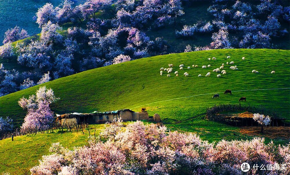 这里的野生杏林都是中世纪留下来的,一到春天,粉红色、白色开遍山野,牛羊爬满山头,一副恬静美好的景象。