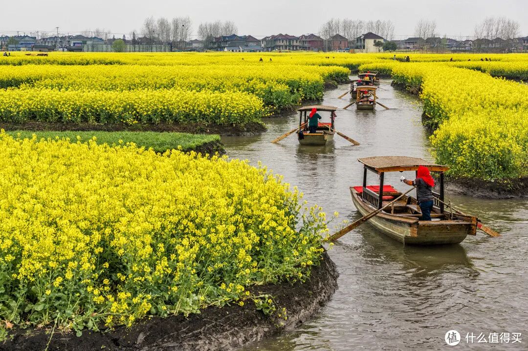 “河有万湾多碧水,田无一垛不黄花”。金黄色的千垛小岛不像其它地方的油菜花田连成片,这里的垛田形状各异,大小不一。