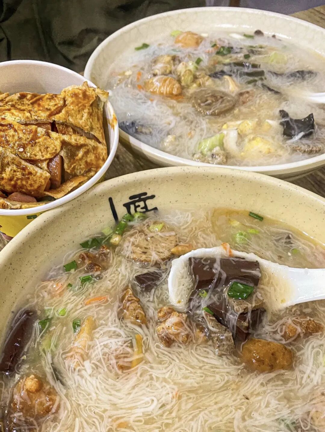 肉燕汤和小馄饨有点像,但外皮薄脆,肉质鲜嫩,吃进嘴里特别弹滑!肉燕汤的汤底也很灵,大骨几小时熬制而成,非常鲜美!