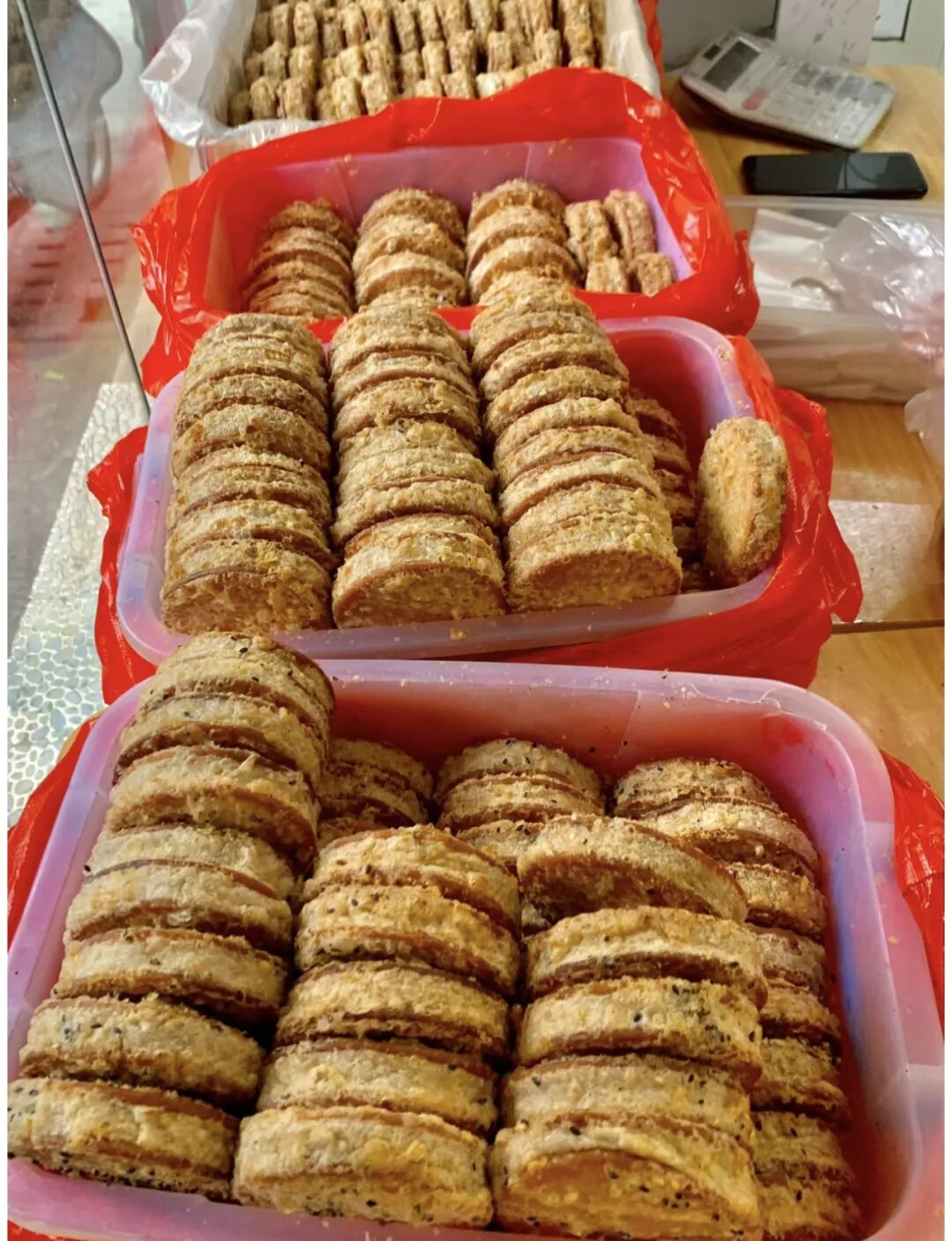 泉州的芋头饼也是必吃的,毕竟地处芋头故乡荔浦附近,芋泥品质绝对一绝!饼干层酥脆,芋泥馅绵密,咀嚼时还带着些许油炸碳水的香气和芝麻香,好吃!吃不完还可以冷藏一下,又是另一种风味~