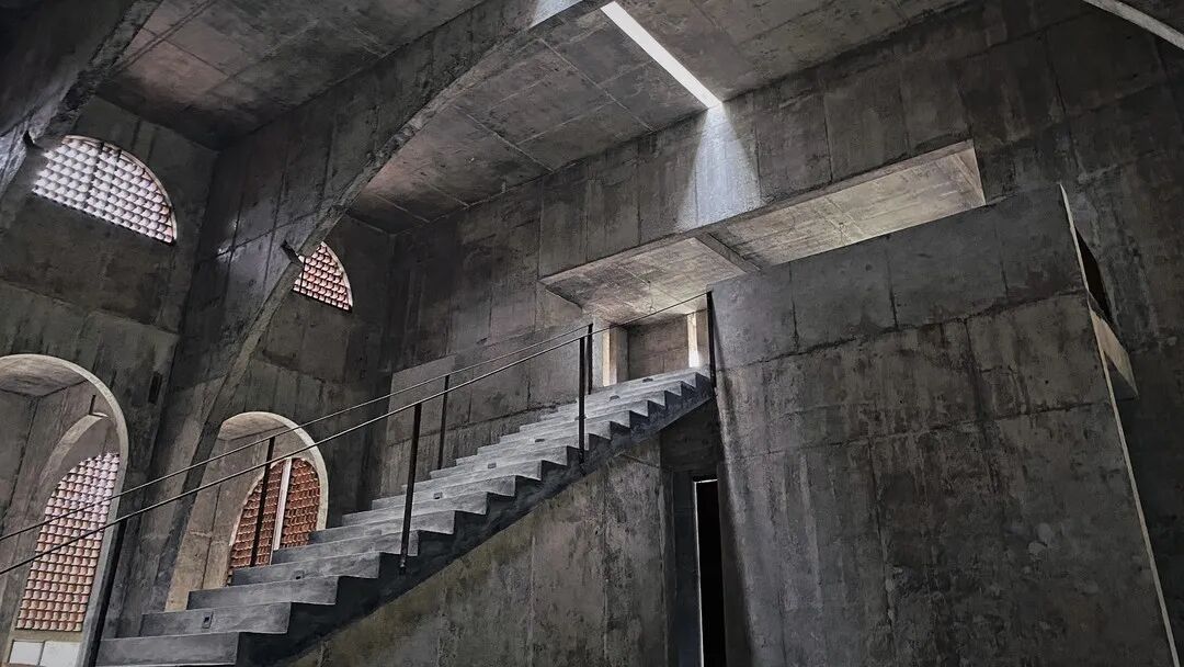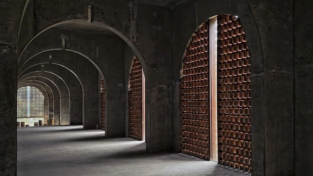 进入到柴窑的内部空间,瞬间感受到的是静谧、空旷,让人心神安宁。柴窑内部对称弧顶的设计还有光束的运用,给人以强烈的仪式感。光束投射的位置会随着时间的推移,太阳的照射角度而发生变化。一边漫步,一边留意地面映射的光影,感受时间和光影的交互,这里值得你付出一点时间。