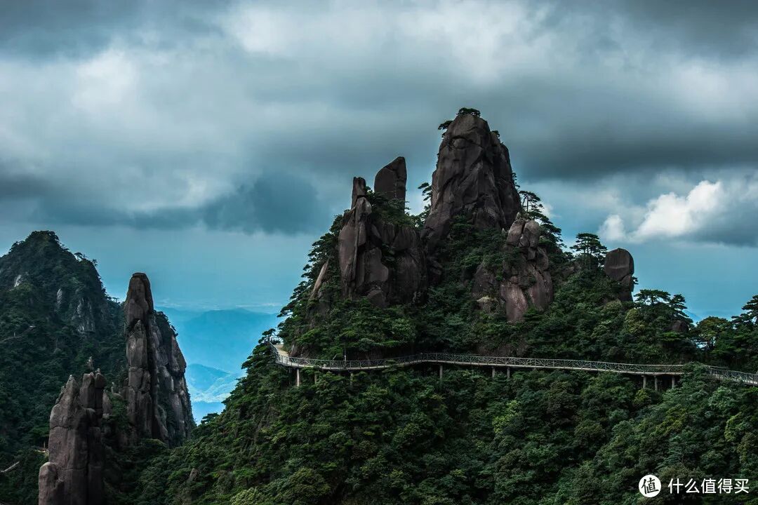三清山拥有世界上已知花岗岩地貌中分布最密集、形态最多样的峰林,并构成了东亚最具生物多样性的环境,它也是道教名山之一,有着中国古代道教建筑的露天博物馆的称号。