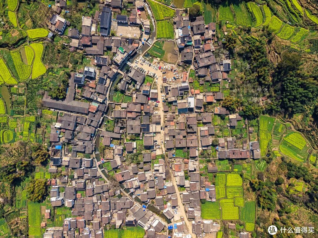 蜿蜒梯田式的油菜花海包围着小村落,构成了一副极美的婺源农村风光画卷。这里有海拔高达千米的连绵群山,在山腰上分布着万亩高山型梯田。