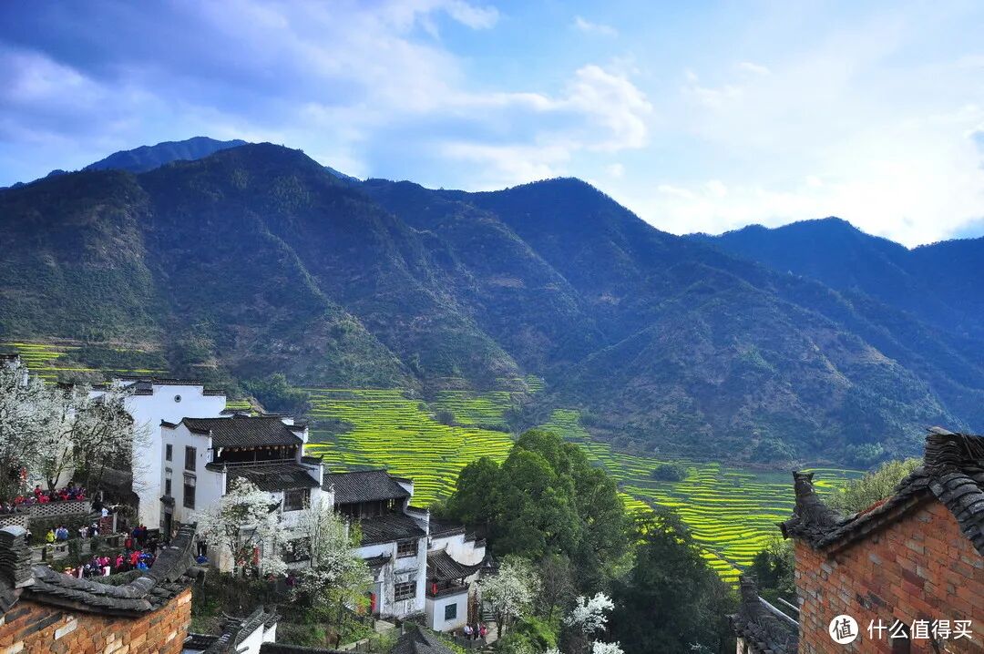 经典的徽派建筑古村落,村后是种了千亩油菜花的梯田,可徒步或者坐缆车,在300米高的栈道或1260米长的索道上俯瞰整个油菜花海。