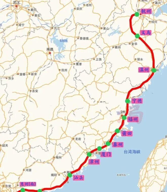 杭深铁路严格意义上不是一条线,而是多条高铁线的总和,杭甬新线、甬台温铁路、温福铁路、福厦铁路、厦深铁路组合而成。