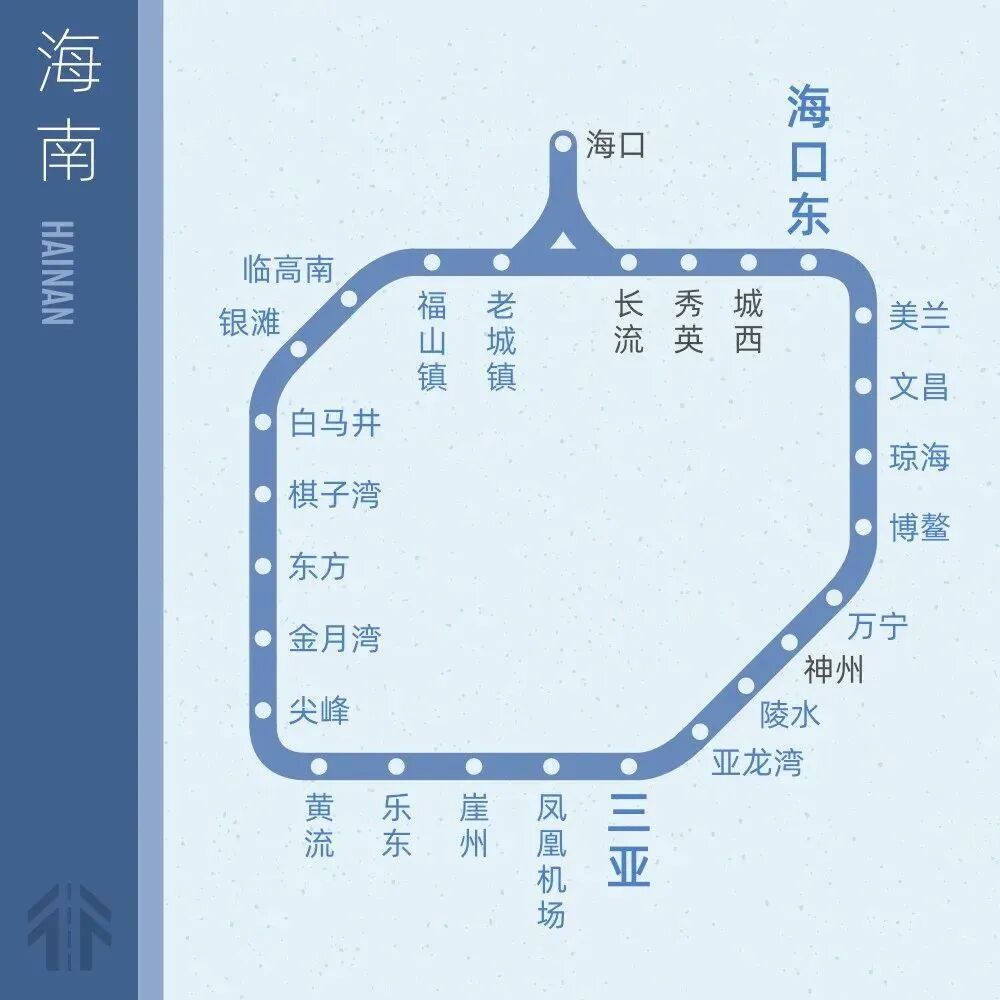 海口、长流、秀英、城西、海口东、美兰机场、文昌、琼海、博鳌、和乐、万宁、神州、陵水、亚龙湾、三亚站。