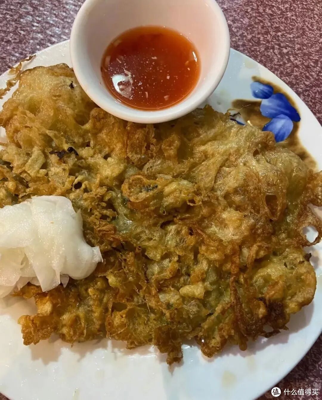 炸的酥脆的蚵仔煎根本闻不到它的海鲜腥味,海蛎大颗饱满,外皮酥脆,搭配着酸萝卜吃还不会感觉到油腻。