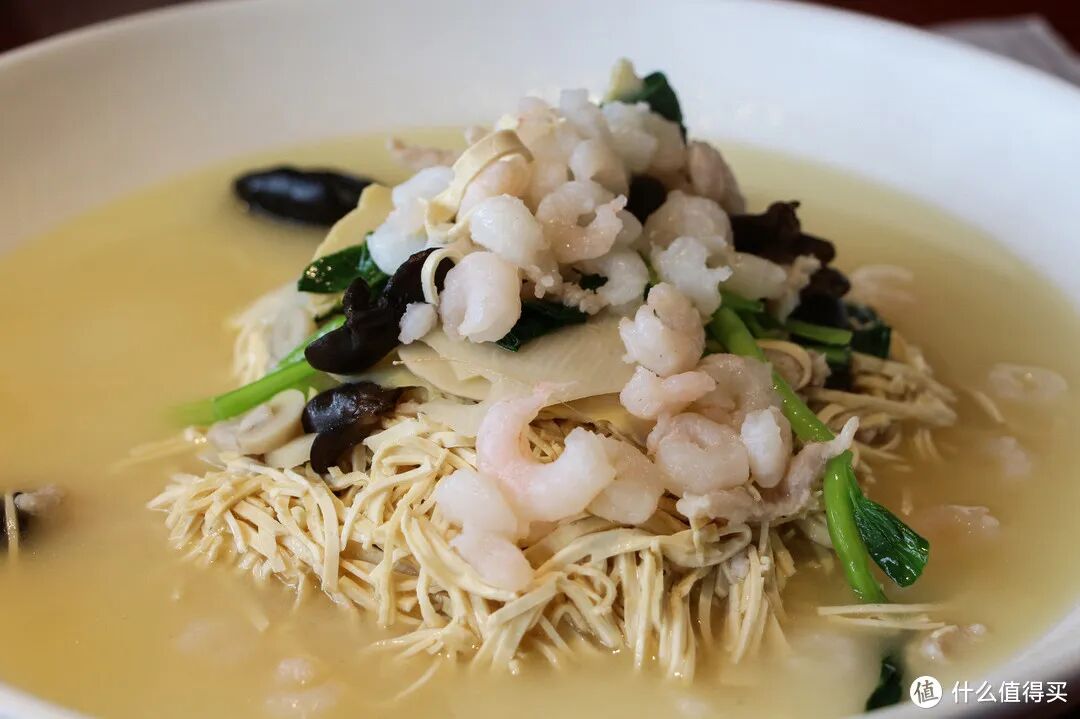 这也是一道考验刀工的菜。切的极细的干丝,用沸水烫软,最后堆叠进盘中,放入虾仁、金华火腿、香油等,是扬州非常有名的一道菜之一。