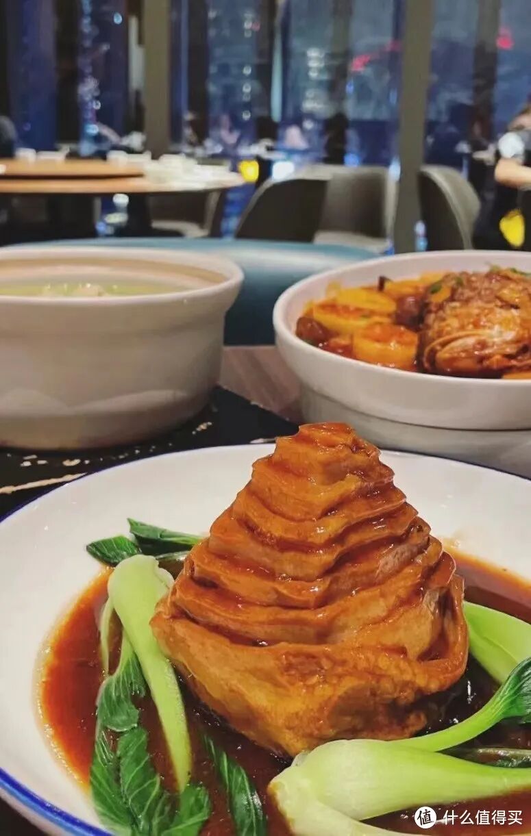 这道菜考验的不仅仅是口感,更是刀工。切成薄片的五花肉堆砌成一座小小的宝塔,宝塔中间放上梅干菜,五花肉吸入了梅干菜的甜味,肥而不腻。