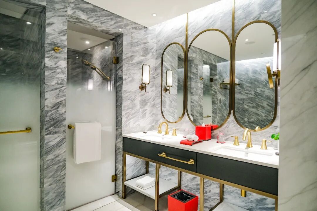 卫生间贴心有双台盆,不仅空间更大,如果带娃出行的话洗漱也更加方便。