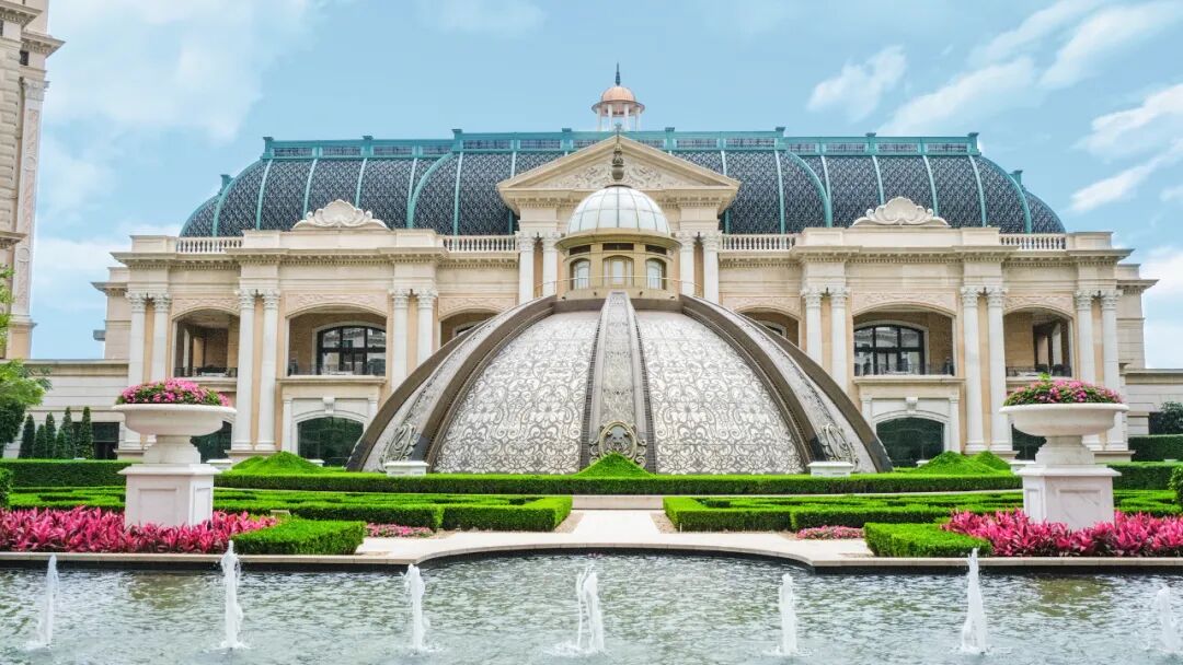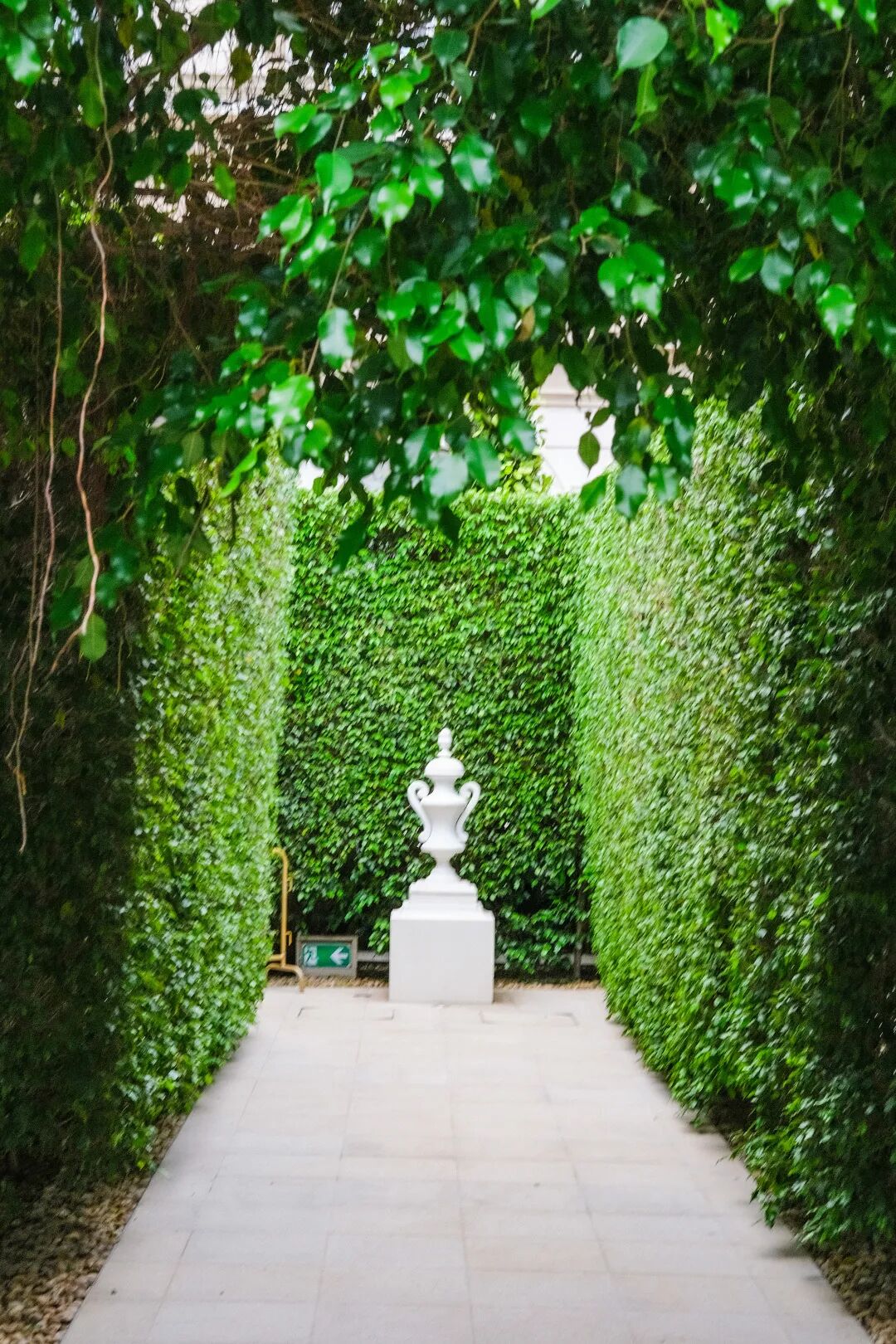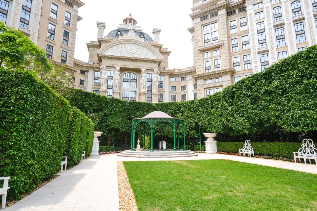 花园参考了法式文艺复兴时期的风格,引入了像古典罗马柱,半圆形拱门设计,还有半圆形穹顶一般的建筑造型,非常漂亮!