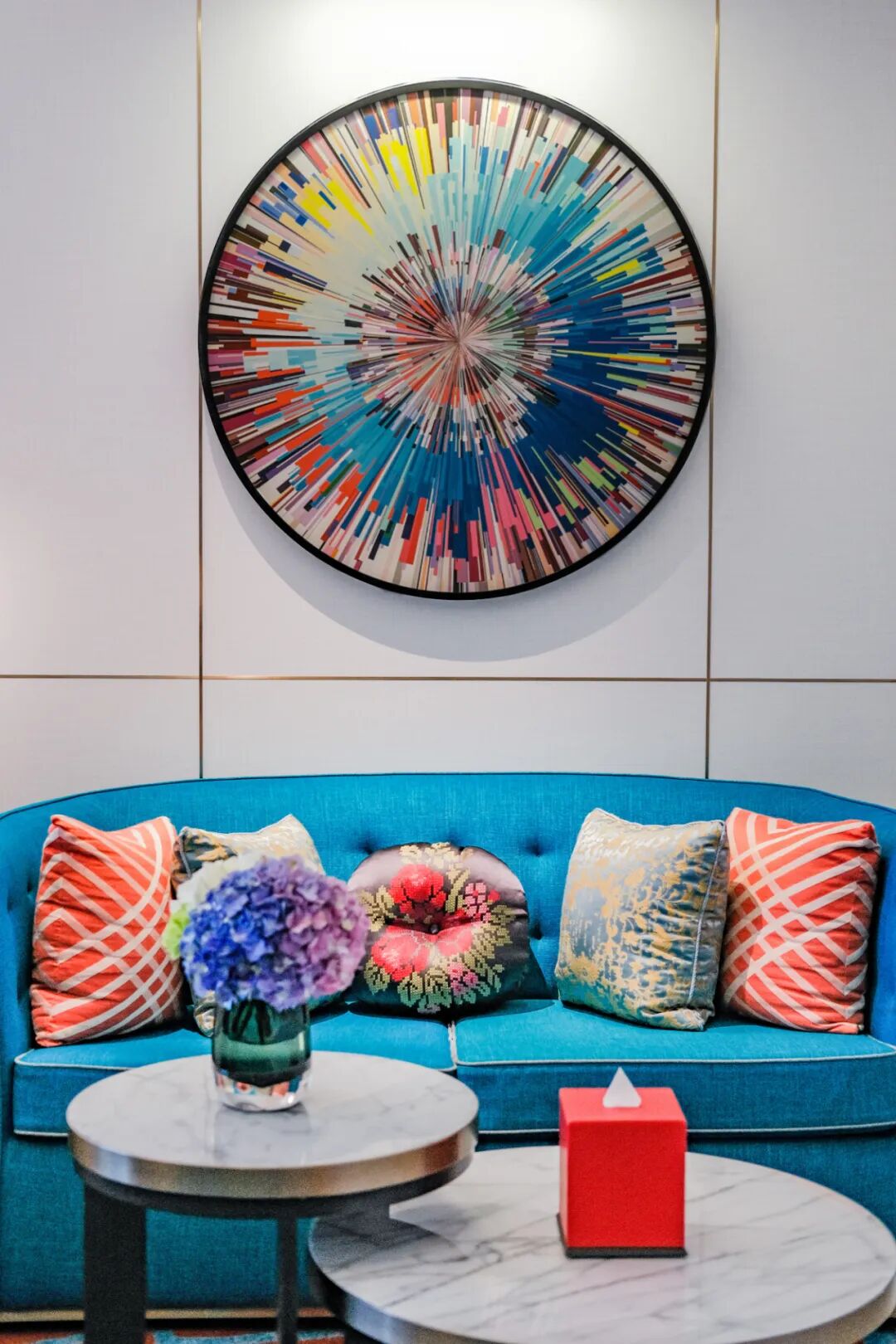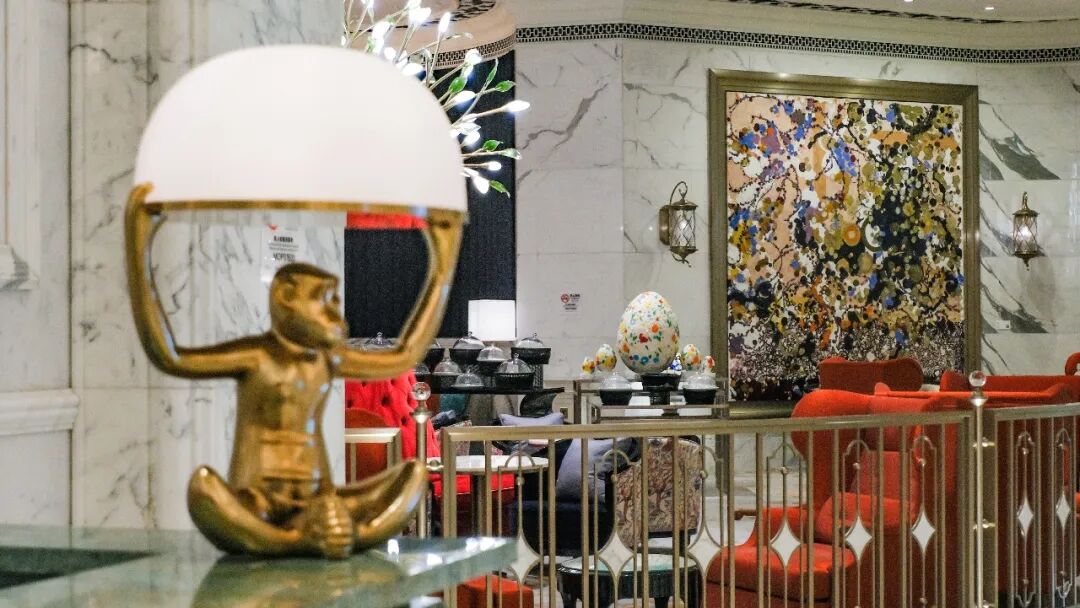 一走进大堂,更是眼前一亮。各国元素被巧妙融合设计到了一起,整个大堂的艺术氛围瞬间浓厚起来。