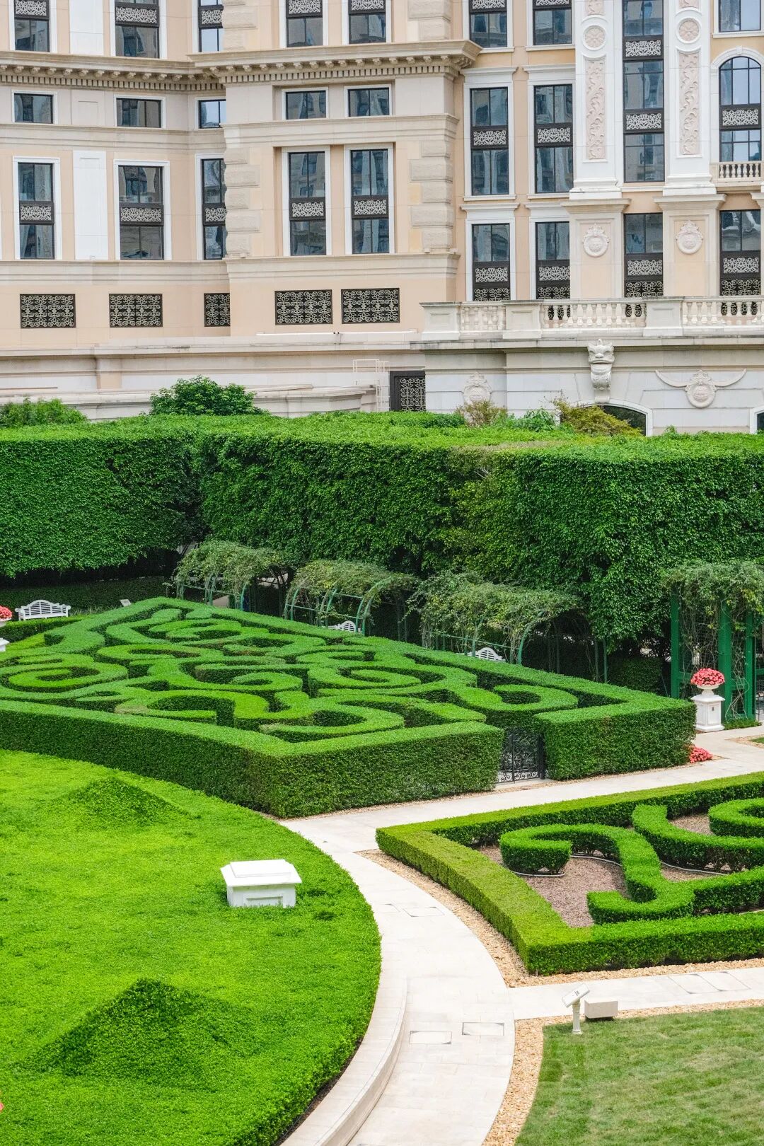 花园中还有2个面积不小、有1人高的迷宫,这个季节绿植还开着小花,走在其中有种爱丽丝梦游仙境的感觉,很适合小朋友来玩~