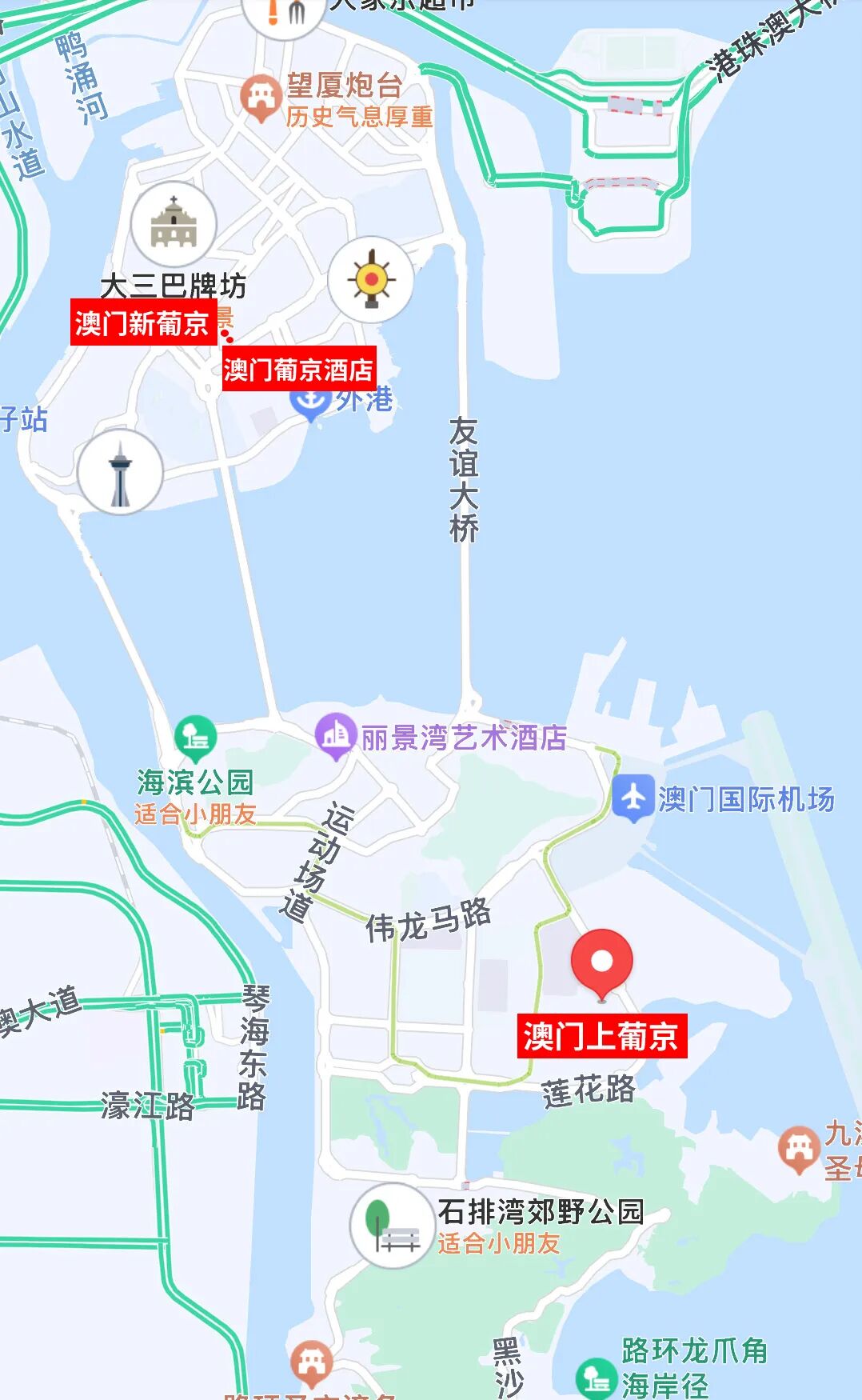 澳门上葡京位于路氹区,距离澳门国际机场仅7分钟左右车程。