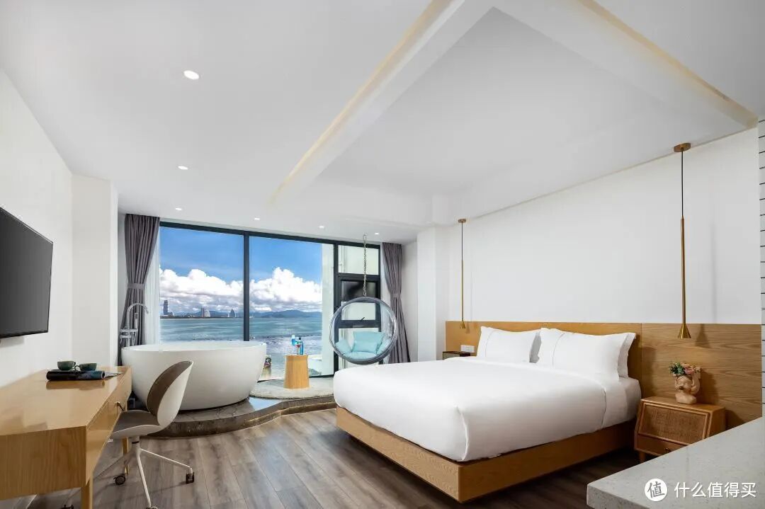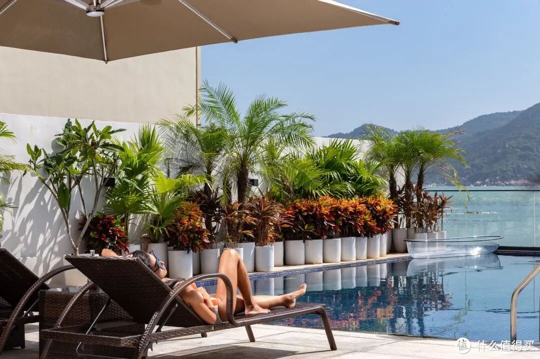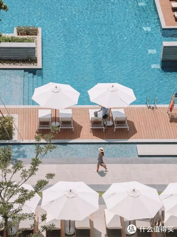 另外,酒店颜值非常高,简约时尚的设计颇有新中式的感觉,其实很和年轻人的胃口。酒店还自带一个60米的户外成人游泳池,所以即使酒店非一线海景,也可以玩的开心~