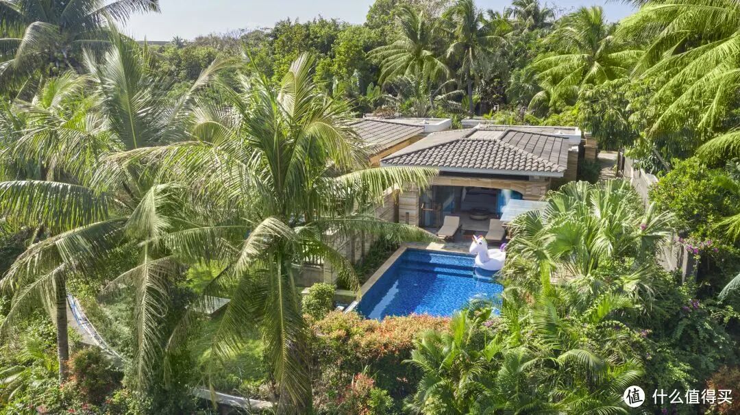 这家酒店是原来的海棠湾康莱德,2021年时换牌成万达瑞华。酒店最大的特色就是全别墅房型,别墅之间绿植环绕,错落有致,所以整个酒店的私密性和人均空间都非常好,基本不用担心人挤人的问题。