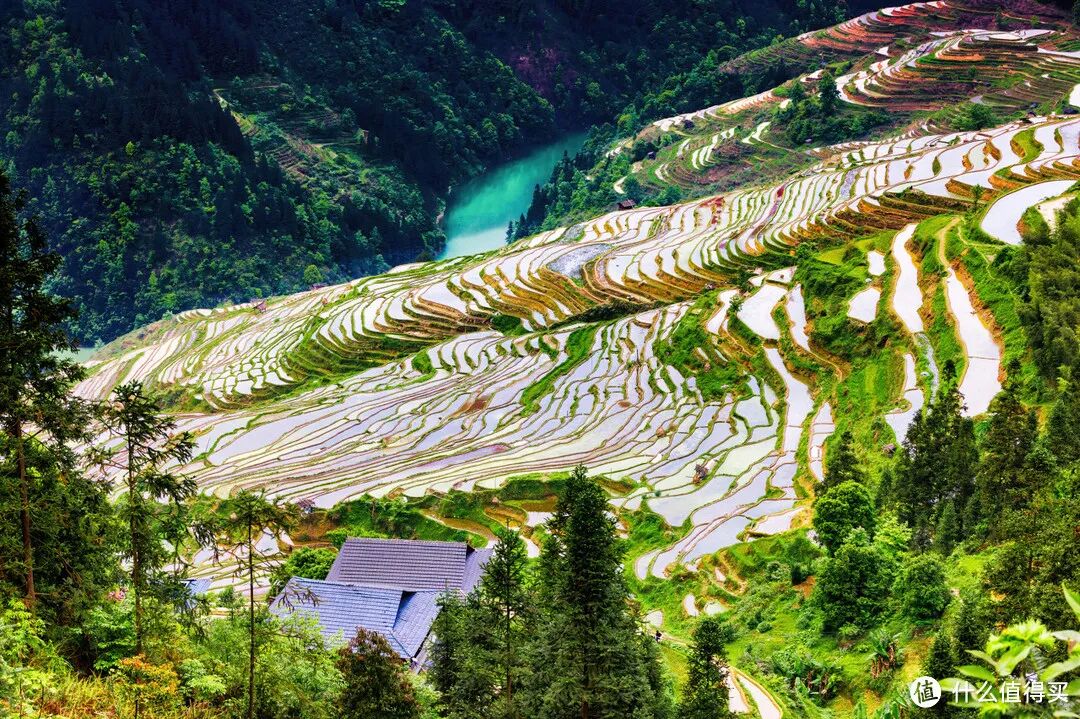 当晨雾渐渐消散,明媚的阳光自由地洒在山野之间,却又不带丝毫炎热。即使在盛夏季节,这里依旧清凉宜人。层层叠叠的梯田在夏天格外夺目。梯田不仅仅是美景的展示,更有着富有诗意的人文之美。寨子因梯田而充满活力,当地人日夜灌溉、耕种梯田,他们的身影如同乐谱上的音符一般优美动人。