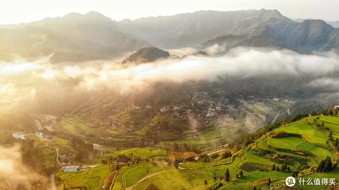 黔东南地区遍布着无数宛如水墨画的梯田,四季之间风景各异,烟雨笼罩中展现出独特的韵味。山谷间的雾气不断上升,使得梯田显得格外柔美。清晨时分,云雾还未散去,阳光透过缝隙洒在梯田上,仿佛将天地连为一体。
