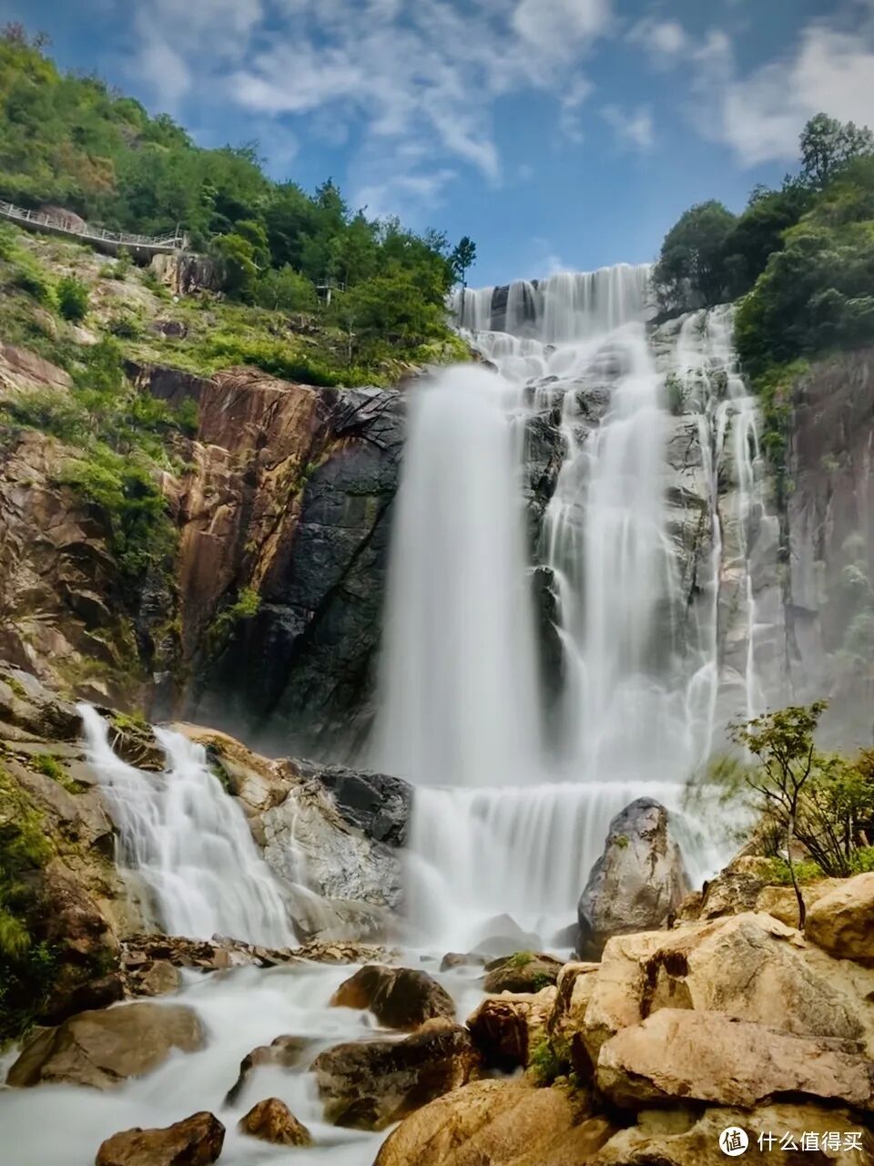 天台山大瀑布,作为中华第一高瀑,高达325米的落差和90米的宽度令人叹为观止。在夏季前往时,沿着瀑布旁的栈道逆流而上,仿佛置身于「飞流直下三千尺」的壮丽景象之中。