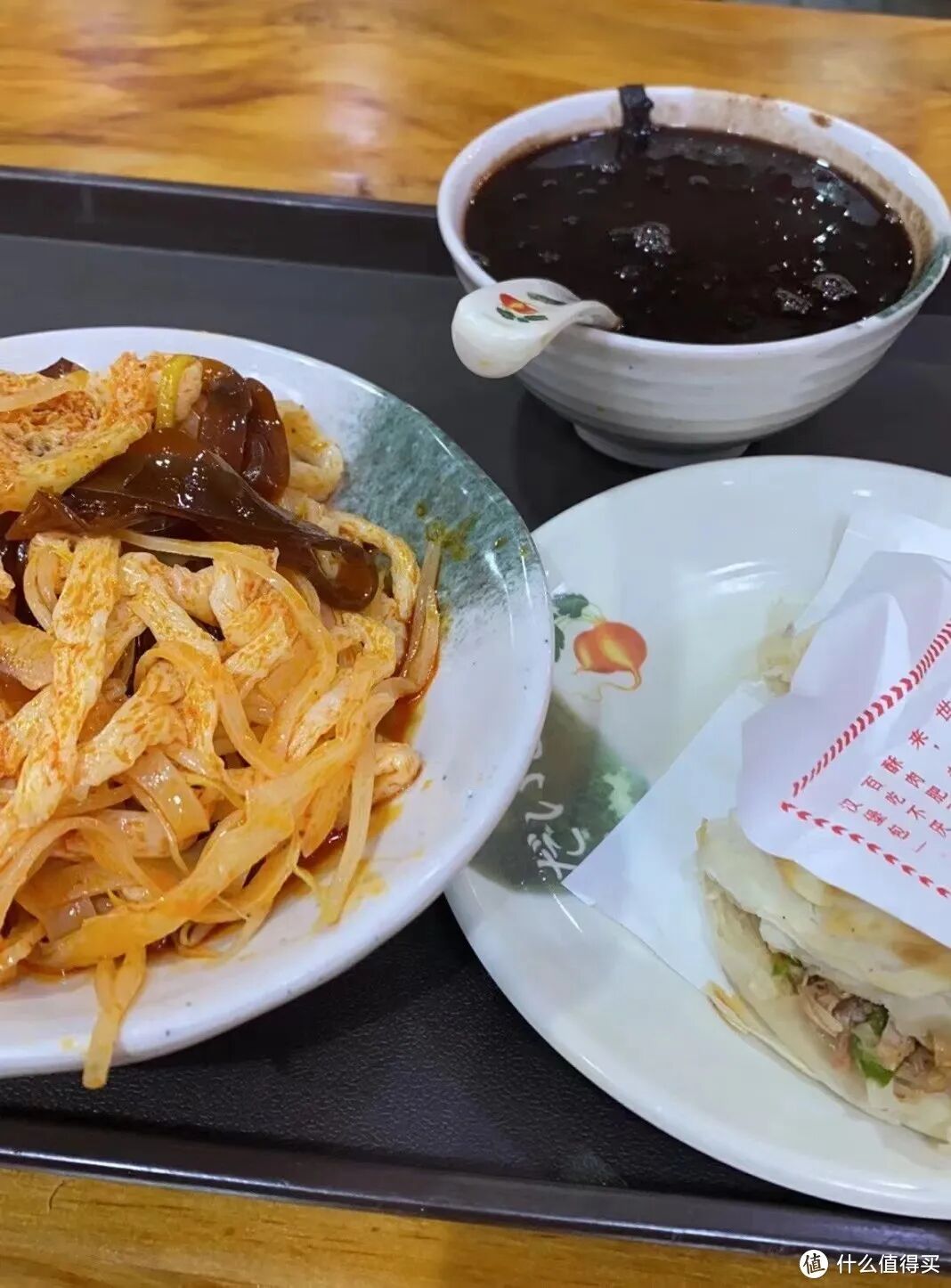 纯手工制作的酿皮,咬上一口时有着弹牙的口感,每碗上桌前都会撒上麻油、香油等调料。拌匀后,酿皮呈现出酸辣爽口的风味,非常开胃。如果再搭配上一份肉馅饼,那简直是美味无比的组合。