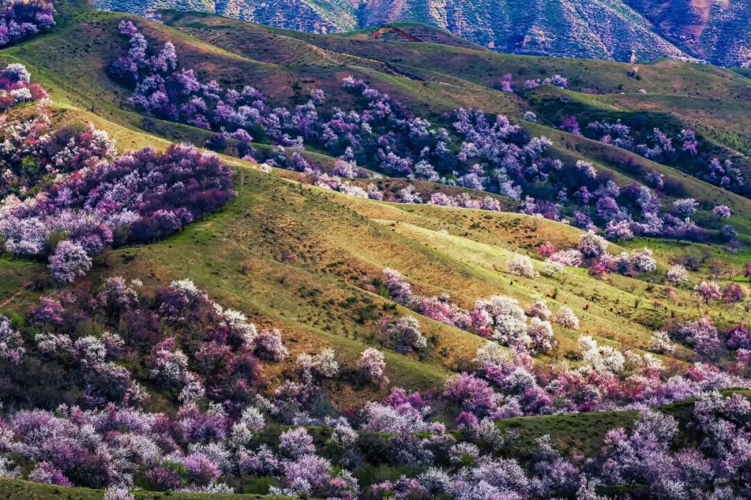 若来到伊犁,务必不可错过,尤其是在夏季。夏塔古道上遍布着野花,它们轻盈而婀娜,翩翩起舞。这片未经雕琢的风景,保留着最原始的面貌,仿佛是上苍将天堂留在了此地。