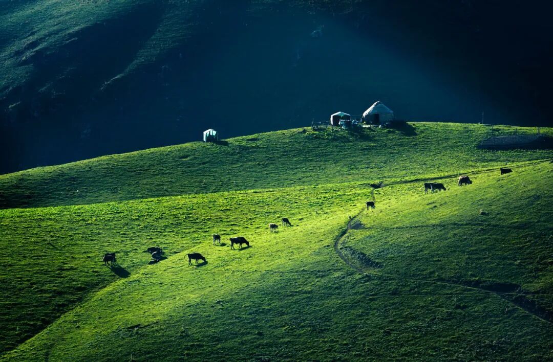在七八月时节,茫茫的草海仿佛是一片碧绿的海洋,一直延伸至天际。前往南山牧场无需跋山涉水,仅需一个多小时的车程即可轻松抵达。