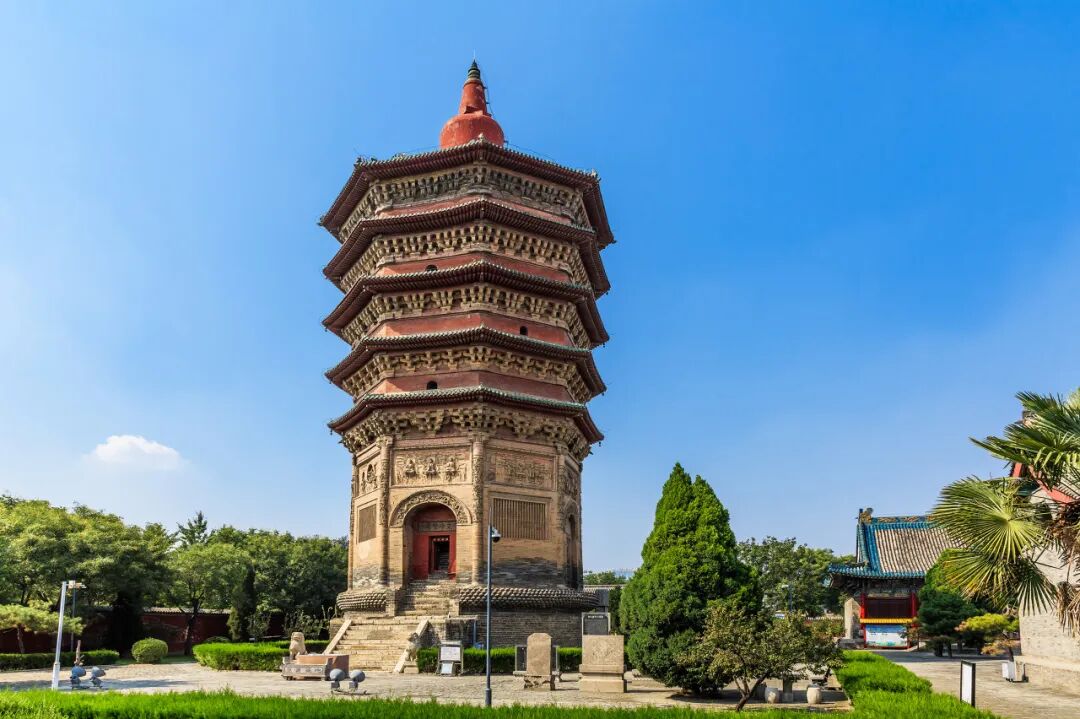 天宁寺位于安阳古城的中心,宛如城池的主心骨。这古老的寺庙内有一座距今已有1000多年历史的文峰塔(又称天宁寺塔),是安阳的标志性建筑。这座塔采用独特的砖木结构,以其伞状的造型而闻名于世,是中国唯一的此类建筑。