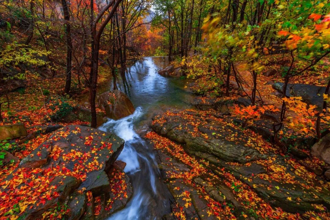 如果想要尽情享受秋天的美景,一定要勇往直前,爬到山顶。每年十一月中旬至上旬,整片枫林都会变成一片绚烂的红海,满山的红叶在阳光的映衬下格外美丽动人。走在枫林中,仿佛身处世外桃源,沉浸在红叶的海洋里。