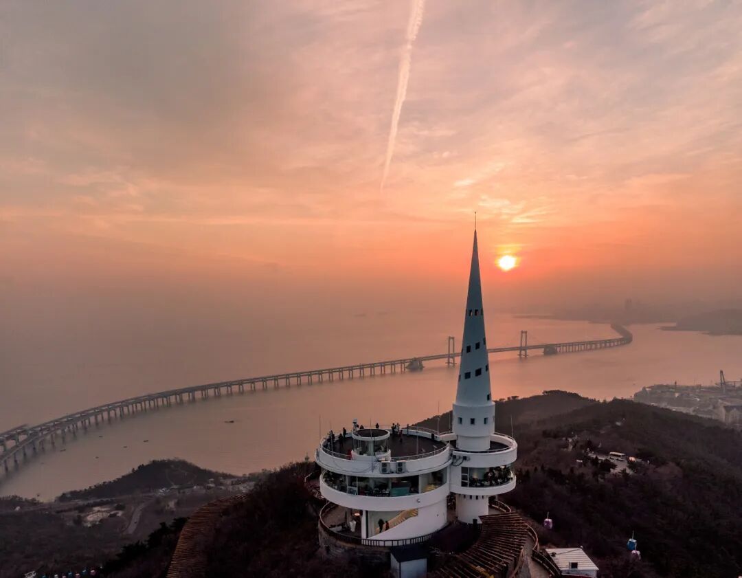 莲花山观景台位于大连市区最高峰莲花山顶,这里拥有一个舒适的咖啡厅,你可以和朋友或另一半一同前来,欣赏五彩夕阳的降落。