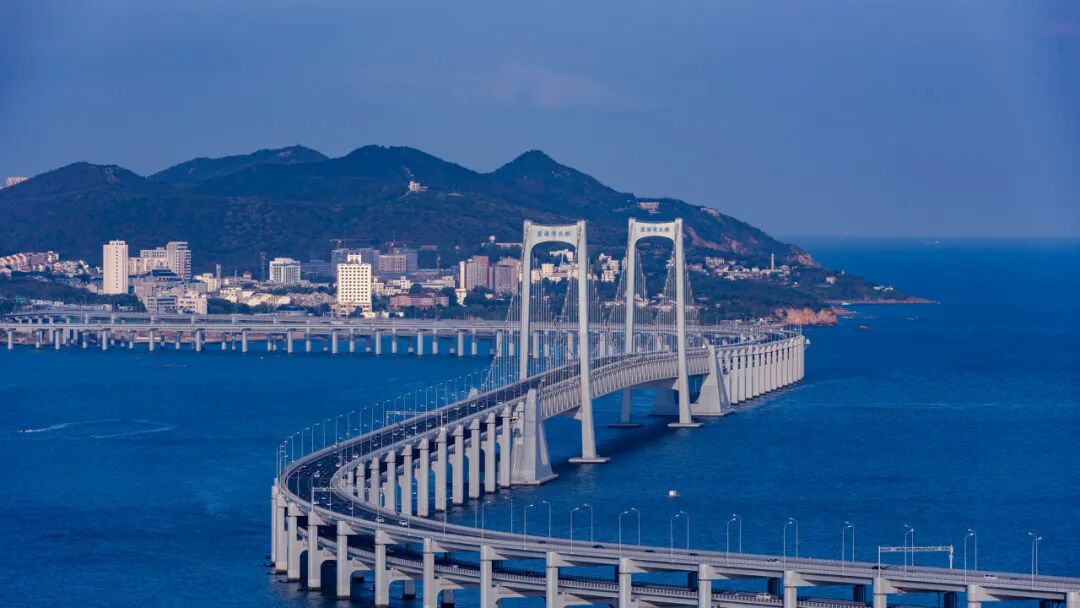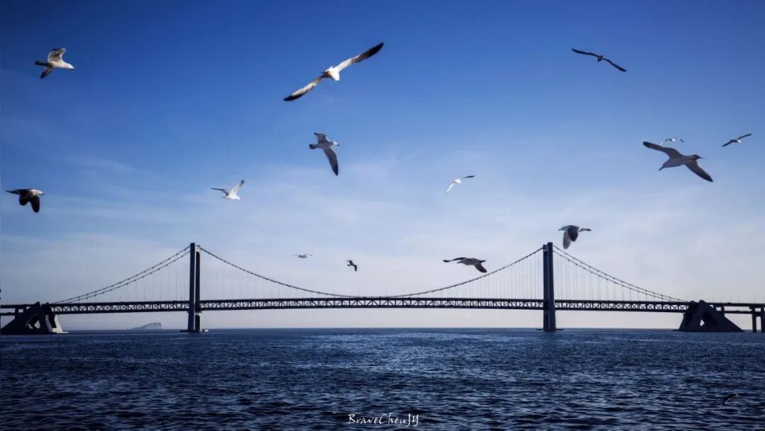 作为中国首座海上锚悬索跨海大桥,它被誉为国内最美跨海大桥之一。这座桥全长近6公里,从金银山起始,一路连接着星海湾,车辆在桥上呼啦啦地驶过,让人仿佛置身于宫崎骏的动漫世界中。