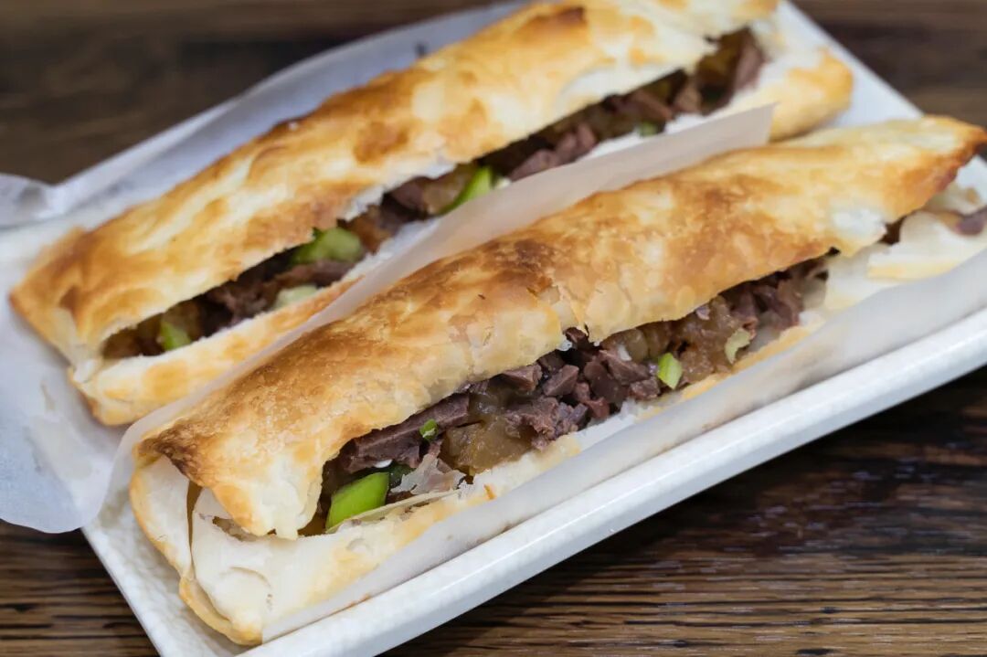 招牌肥瘦肉火烧/焖子肉火烧:驴肉+焖子十青椒!这个搭配太绝了!是那种长条形状饼的,软软糯糯的焖子,咸口的凉切驴肉,加上解腻的青椒,配着烤的一口掉渣,超级满足!!!