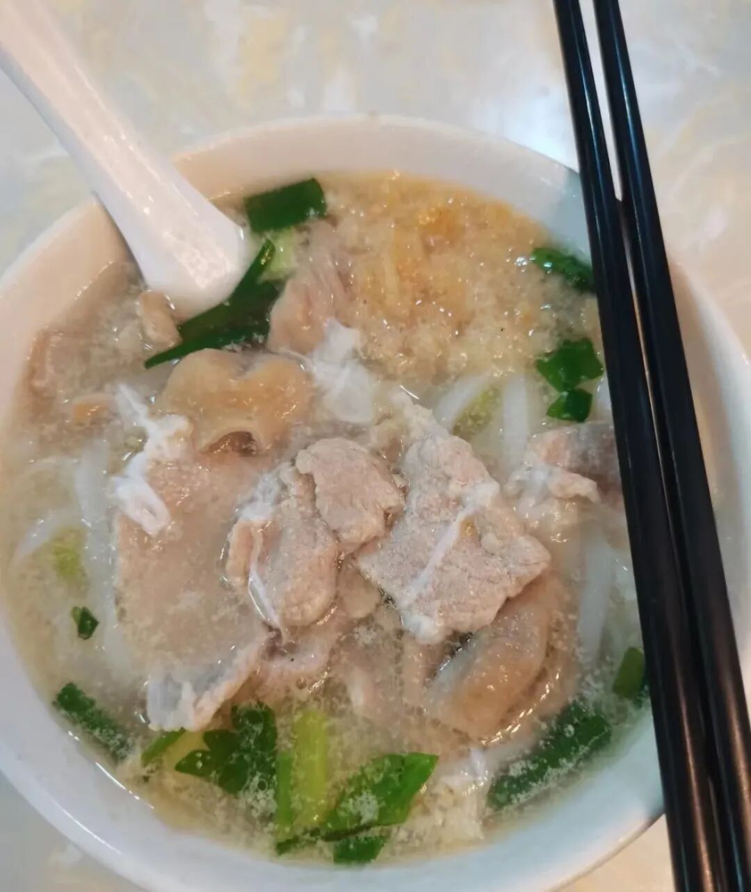 万宁有很多家糟粕醋,但是这家的糟粕醋和其他家很不一样。他们家的糟粕醋喝起来酸甜微辣,原因是在锅底里添加了熟透的木瓜,所以喝起来不同于别家的,有一股清甜的香味。吃完可以试一下他们家的后安粉,料巨多!