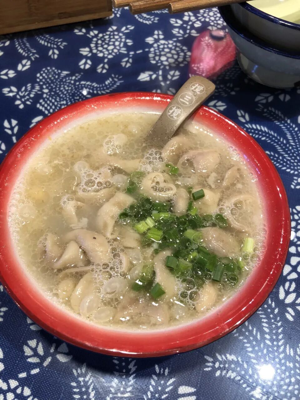 这家餐馆被誉为乐山的烧麦之王,是当地人早餐的不二选择。他们家的标志性搭配是一笼烧卖和一碗海带鸡汤。餐单上的招牌烧麦有四种口味:鲜肉、鲜肉香菇、翡翠虾仁、鲜肉韭菜。