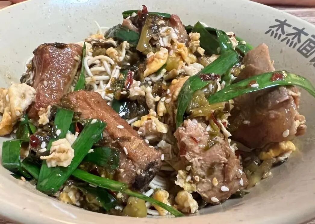 杰杰面馆的拌面是最好吃的,尤其推荐他们家的小排蛋拌面,味道鲜美无比,面条细腻入味。建议去盛堰路上的这家老字号试试。