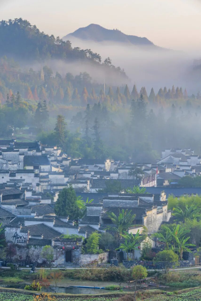 徽州的千年历史,深深扎根在古城古村之中,明清时期的祠堂、牌坊和老屋依然保留着古老的风貌。竹筏荷塘之间漂泊,雨幕轻轻垂下屋檐,岁月仿佛一点点倒流。
