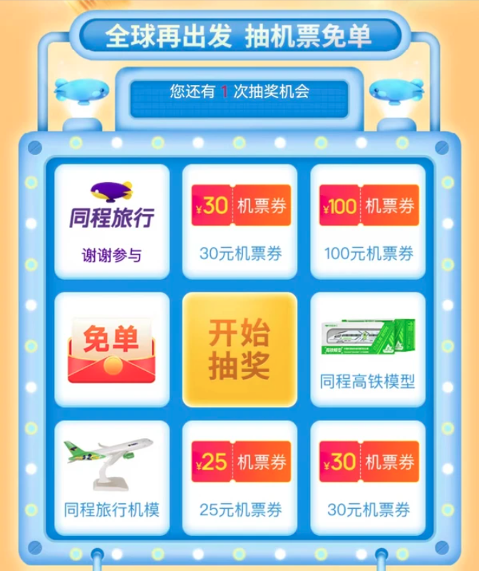 还可以免费抽0元机票!