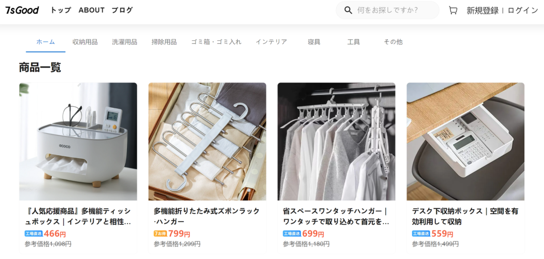 在网页端,7sGood有明显的日系风,整体色调素净、整洁。没有大量同款产品扰乱消费者的判断,每款产品的SKU也相对较少,看起来更像是“严选平台”。产品品类包括家居用品(收纳、清洁、洗涤等)、厨房用品(收纳、餐具、炊具等)、小工具和办公用品(音频、智能手机外壳、智能手机用品、文具等)等。
