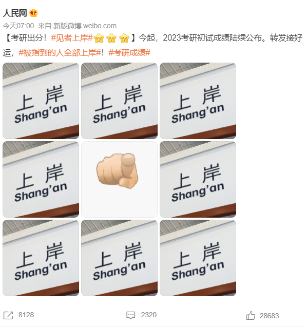 不少网友晒出自己的成绩单,有人喜极而泣,有人激动跳起。“考研上岸”成了热搜词,网友们排着队接好运。