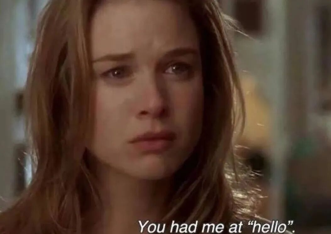字面意思为“你在说 hello 的时候就拥有了我”,引申出就是“我对你一见钟情”,当我们刚认识,说“hello”的时候,你就拥有了我的心。