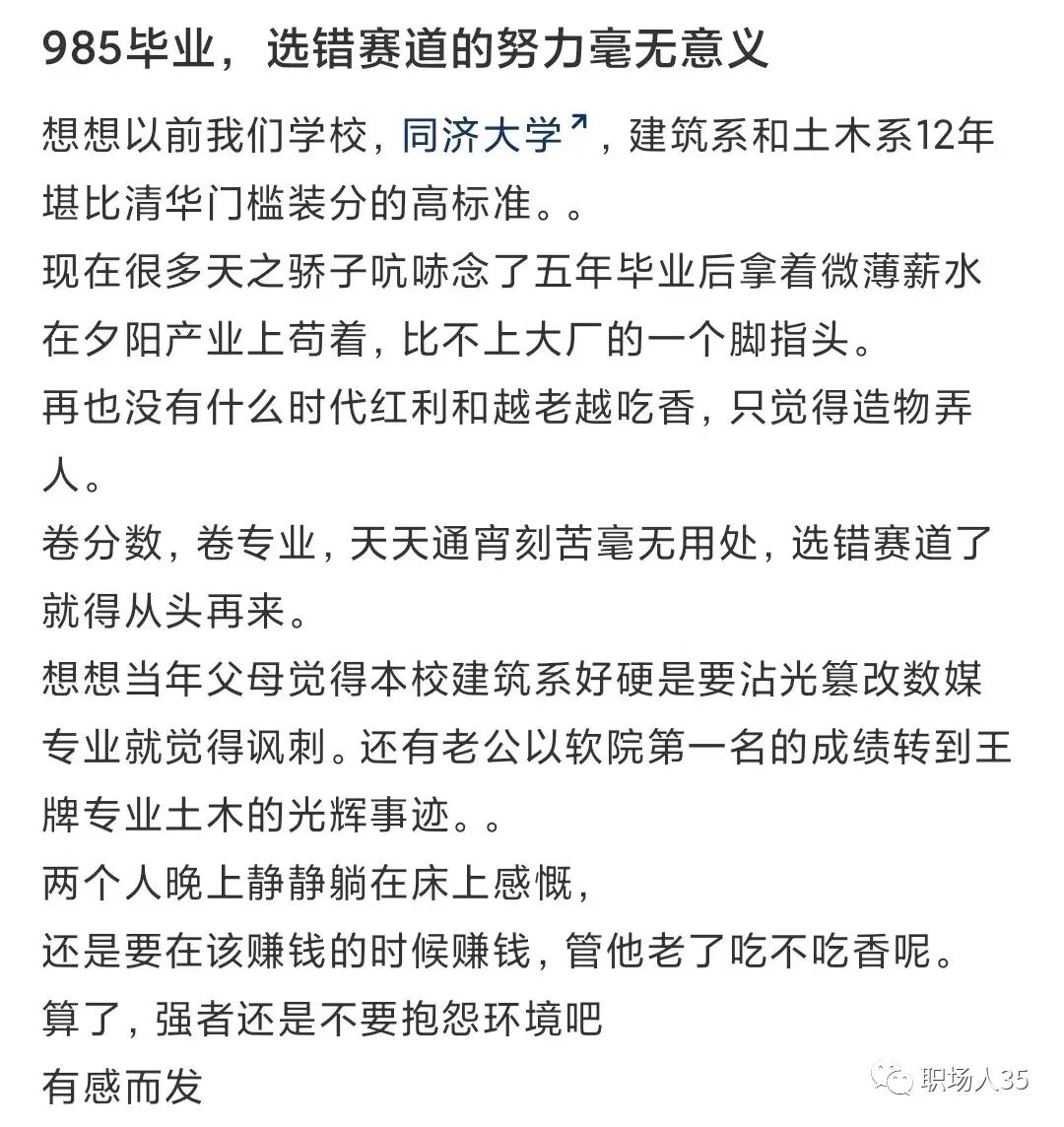 但是,我们不得不承认。过去的这些年,土木这个赛道比不上互联网,更比不上金融。